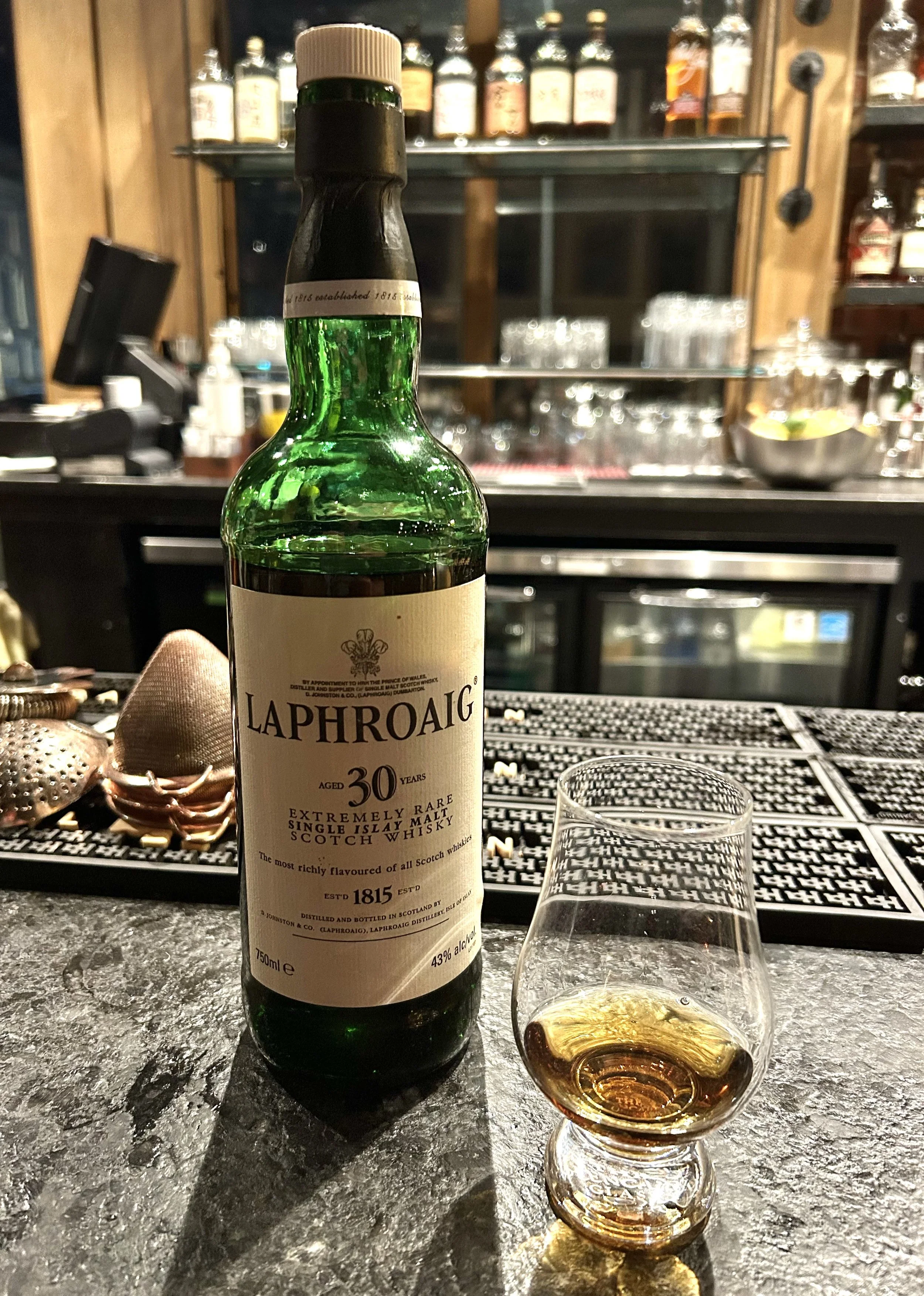 This tasting was a milestone birthday treat, and it came at no small expense - this is very hard to find, especially in our area. It's Laphroaig 30 Year, a distillery bottling, coming in at 43% ABV. We were able to try it at a local whisky bar, where it had been sitting for a couple of years, rather untouched.