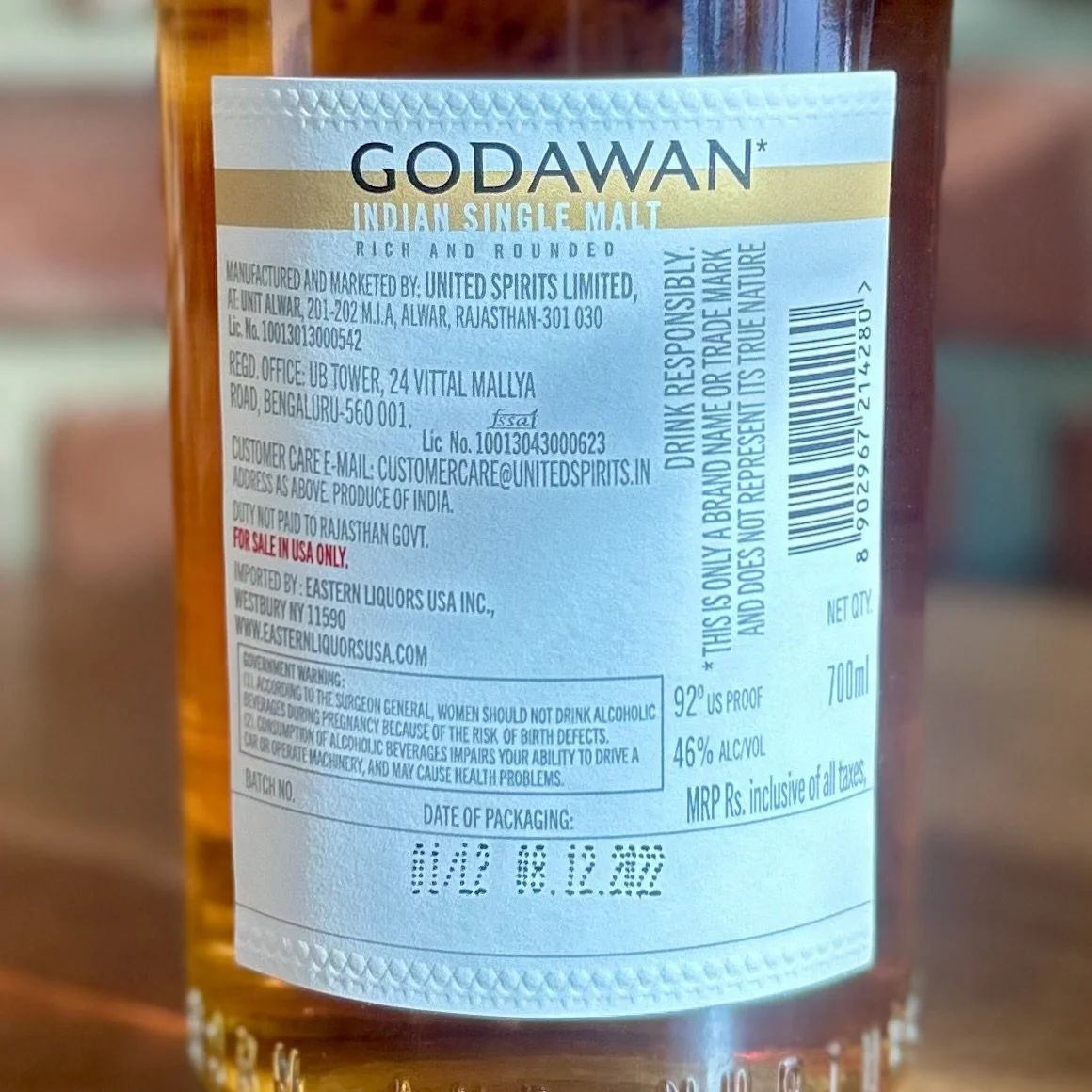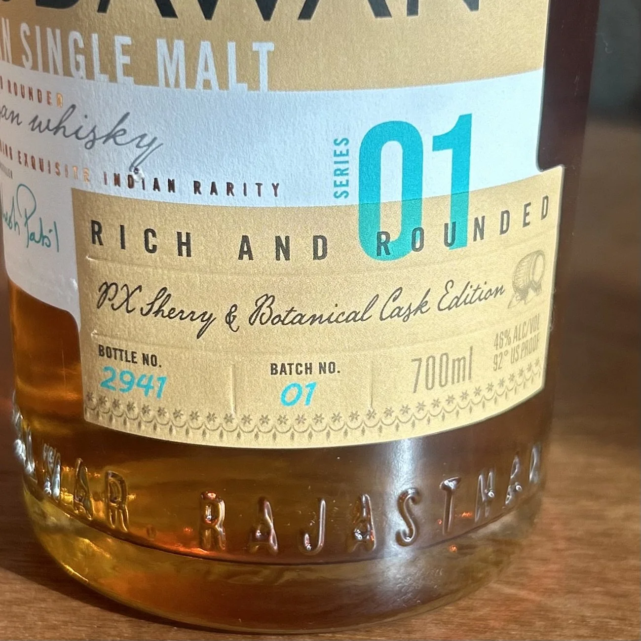 Alwar distillery, based is Rajasthan, is owned by Diageo. They produce a single malt sold under the brand Godawan; there are a couple of core releases, including this Series 01 called 'Rich and Rounded, as well as Series 02, which is called 'Fruit and Spice.'
